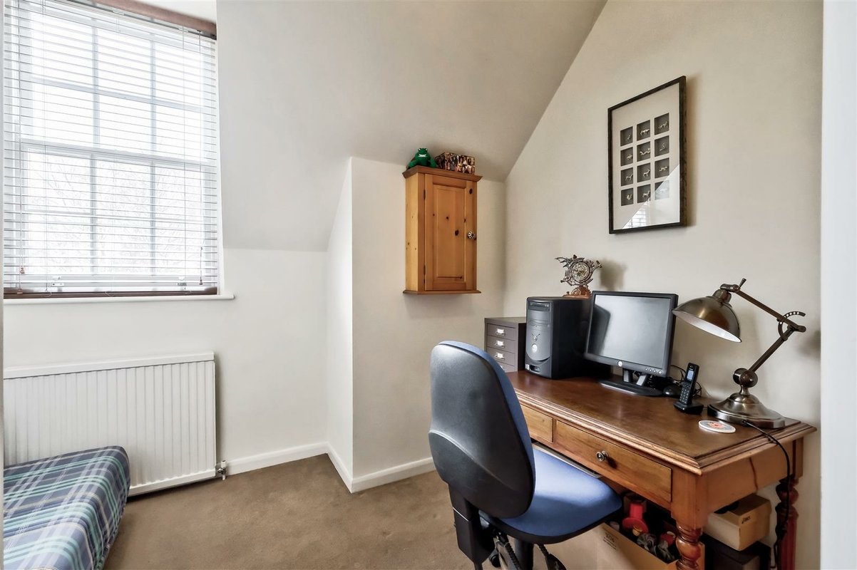 The house is positioned within secure, gated, communal grounds and in addition to enjoying the estate facilities, boasts a private courtyard garden. Secure parking includes a garage with 2 additional parking spaces within the courtyard car park. The elegant formal sitting room on the ground floor has a beautiful outlook over the rear gardens and a staircase leading to a large reception/study/TV room. Enjoying elevated, dual aspect views of the surrounding countryside and grounds this room is an airy welcoming space: It could just as easily be used as a playroom, fifth bedroom or occasional guest room with a large, adjoining storeroom providing the ideal toy storage area, ensuite bathroom or wardrobe area. The bespoke kitchen/breakfast room with an expansive run of hand-made solid wood units, island and granite work surfaces runs from the hallway and leads to a spacious conservatory of 22 feet approx in length. Currently housing the dining area with a separate seating area, the conservatory leads to the property’s private courtyard garden and benefits from a set of double French doors at either end, making it a wonderful space to connect the home to the garden and grounds in the summer months. There is a W.C off the ground floor hall which also houses a full height cupboard for coat and shoe storage. The first and second floors house four bedrooms, the two largest being generous double bedrooms with en-suite facilities. The substantial principal bedroom suite on the first floor has stunning, far reaching views over open countryside, with a large, fully tiled ensuite shower room. There is a modern family shower room servicing the remaining two bedrooms which is handily located just across the hall from both. Bespoke storage is in all four bedrooms providing a great deal of storage, fully utilising the space on offer to its fullest potential.
