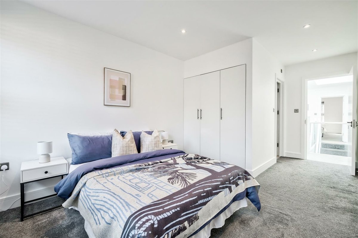 The first floor has been designed to provide two generous double bedrooms, both with built in triple-wardrobes and perfectly formed en-suites shower rooms. A utility cupboard is positioned between the bedrooms, providing the perfect space to wash and dry clothes without the hassle of traipsing up and downstairs with heavy laundry baskets. The property is offered for sale chain free.