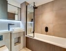 Further accommodation includes two double bedrooms; the master enjoying an inbuilt triple wardrobe, Juliette balcony and stunning en-suite shower room and second bedroom benefitting from direct access to the apartments private roof terrace. There is also a spacious, contemporary family bathroom with plenty of integrated storage, rain shower, additional hand shower over bath and combination of mood/overhead spot lighting.