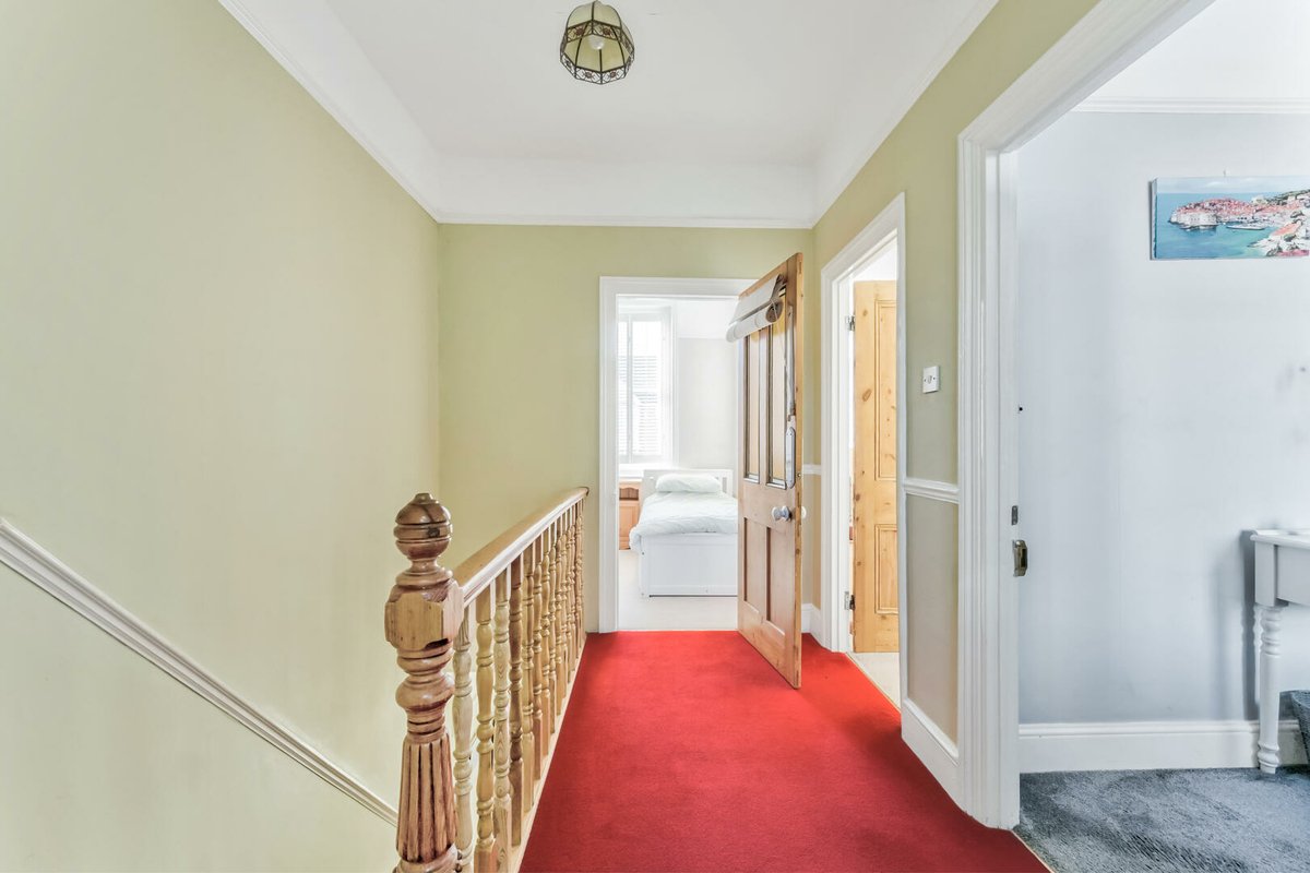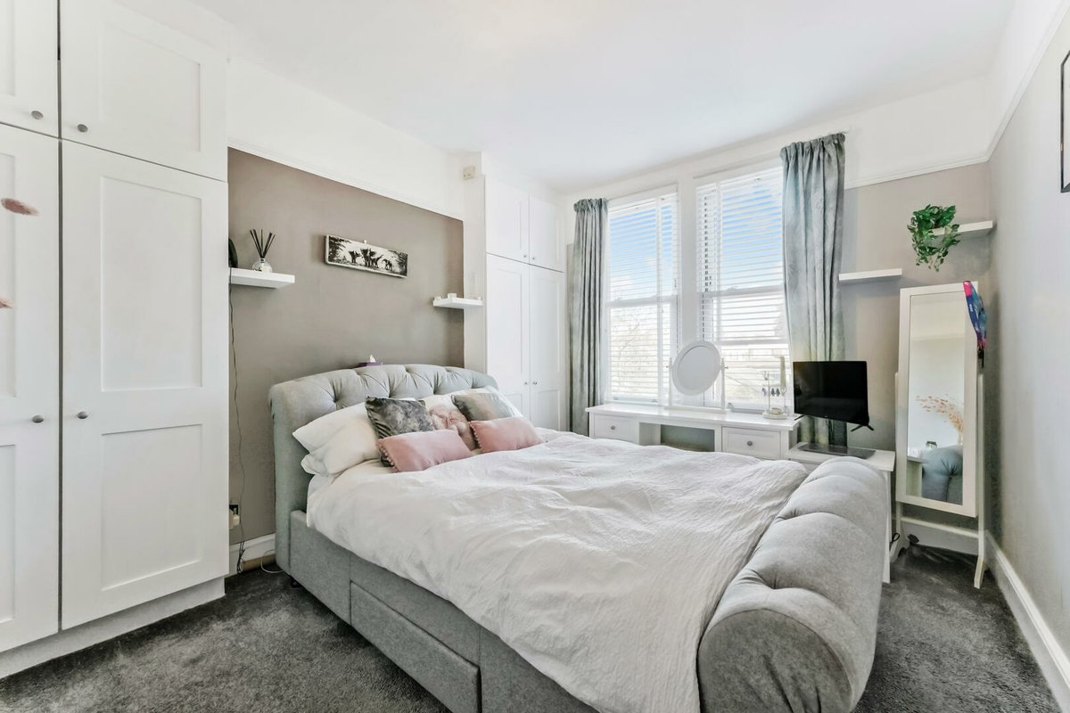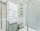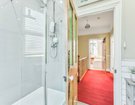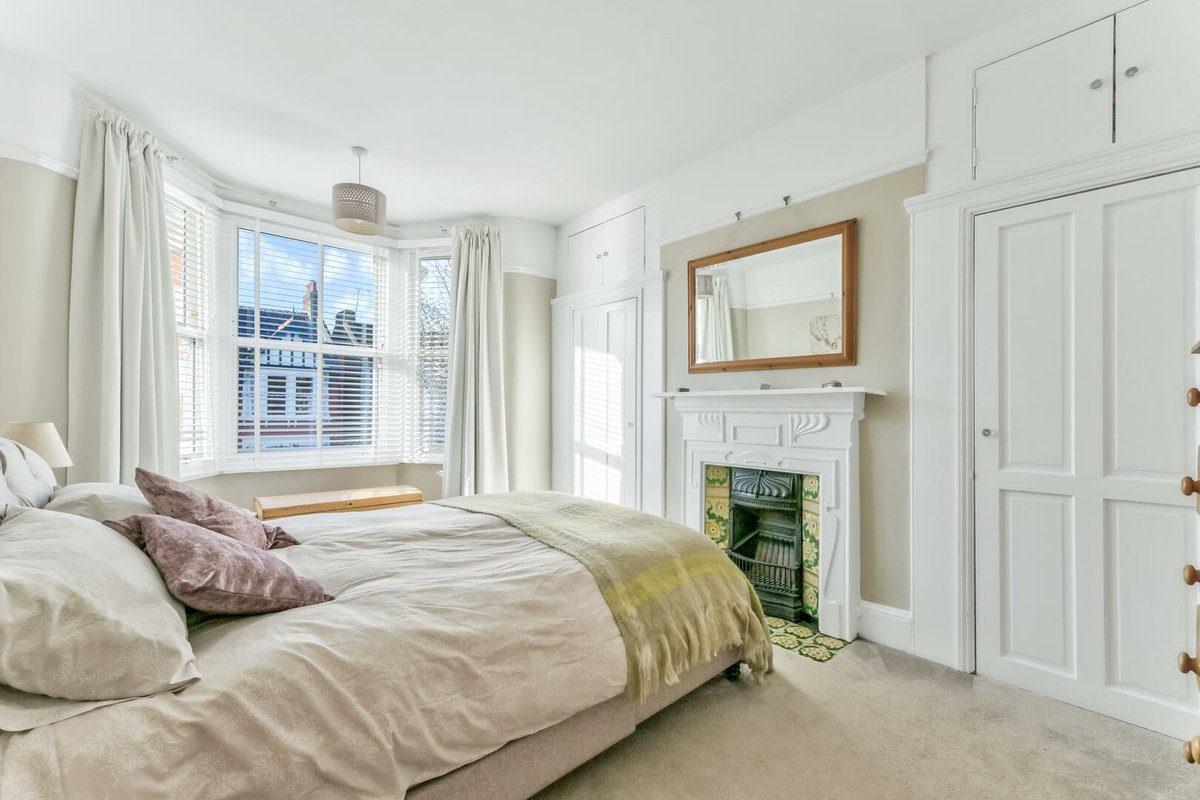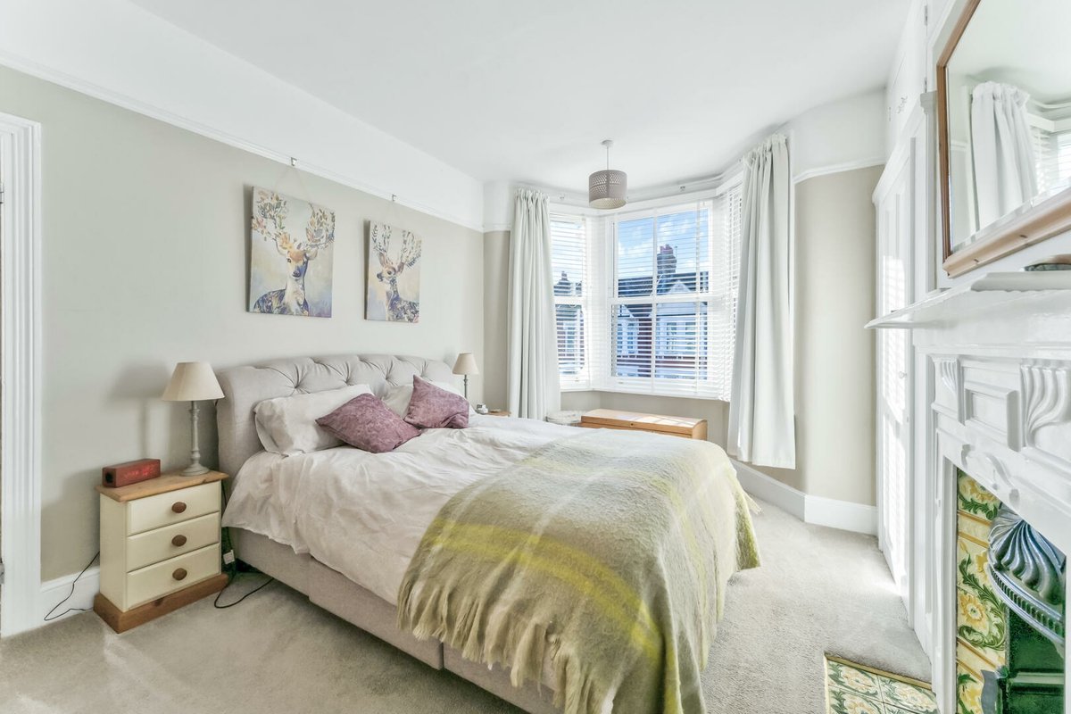 The first-floor hosts two generously sized double bedrooms, each with fitted wardrobes, and delightful original fireplaces. A spacious single bedroom provides additional fitted storage and its own attractive fireplace. The bathroom blends modern comfort with Edwardian elegance, offering stylish white mono-tone tiling, a high-flush traditional toilet, and a walk-in double shower.