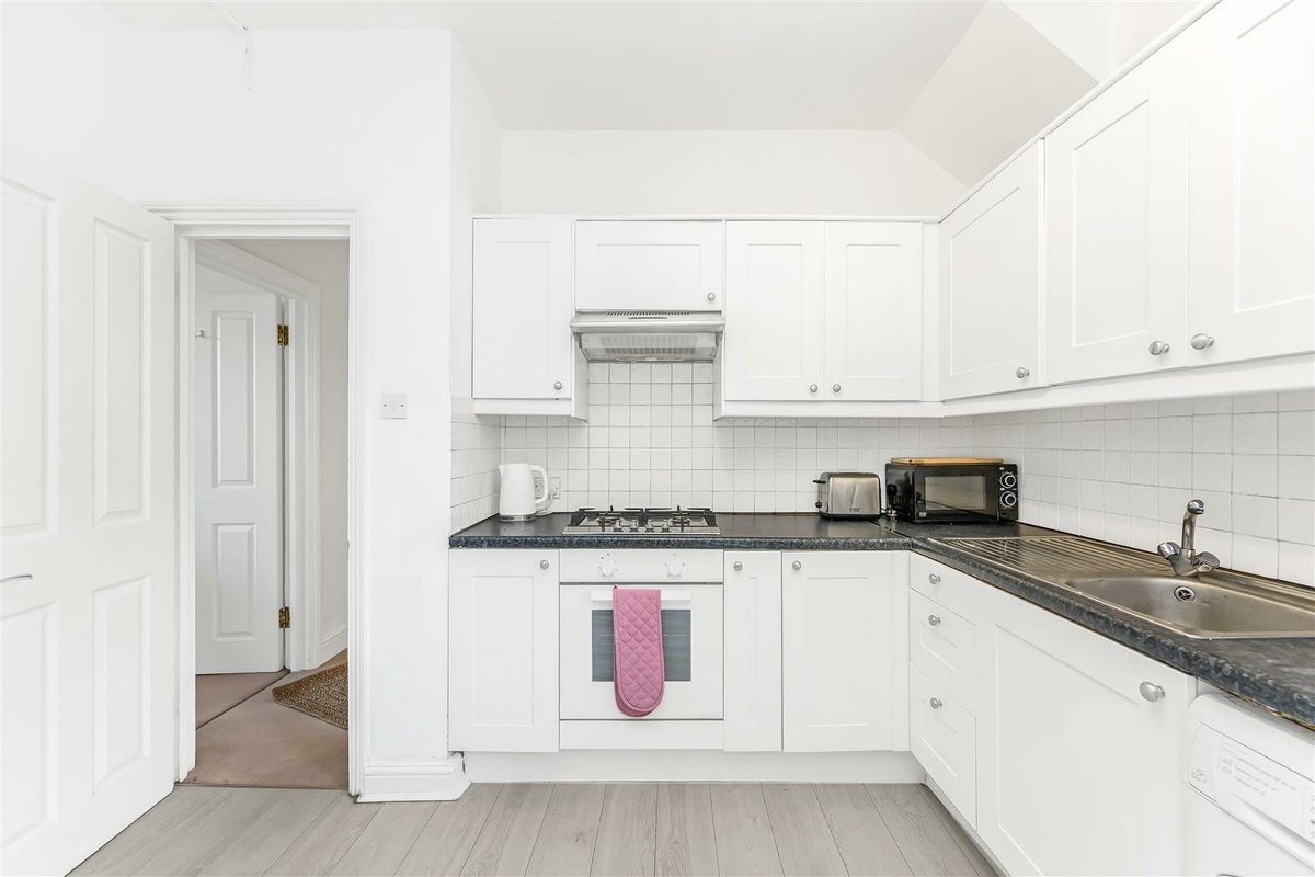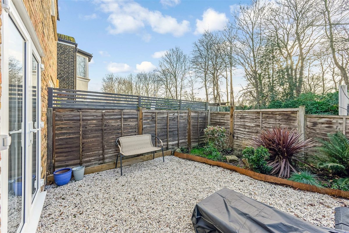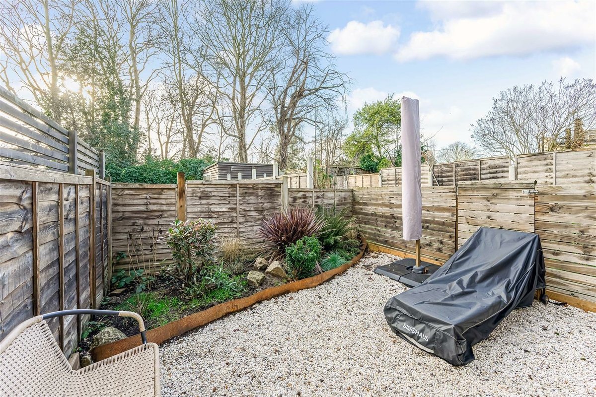 Outside, the private rear garden is low-maintenance and laid with shingle, offering a calm, easy-to-enjoy outdoor space. The apartment is offered part-furnished.