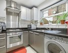 Internally, the accommodation is comprised of a spacious reception room flooded with natural light from the box bay window that is framed with elegant plantation shutters. The contemporary fitted kitchen features a stylish mix of grey cabinetry, a white mono-tiled splashback and integrated appliances. The generous principal bedroom benefits from fitted wardrobes, direct access to a private patio area and a sleek en-suite shower room.