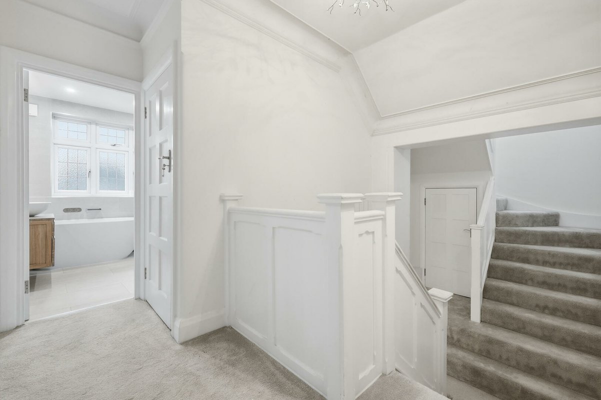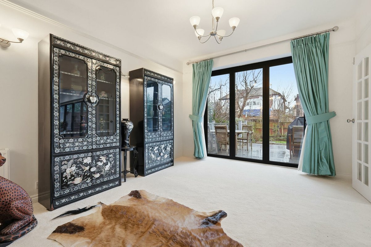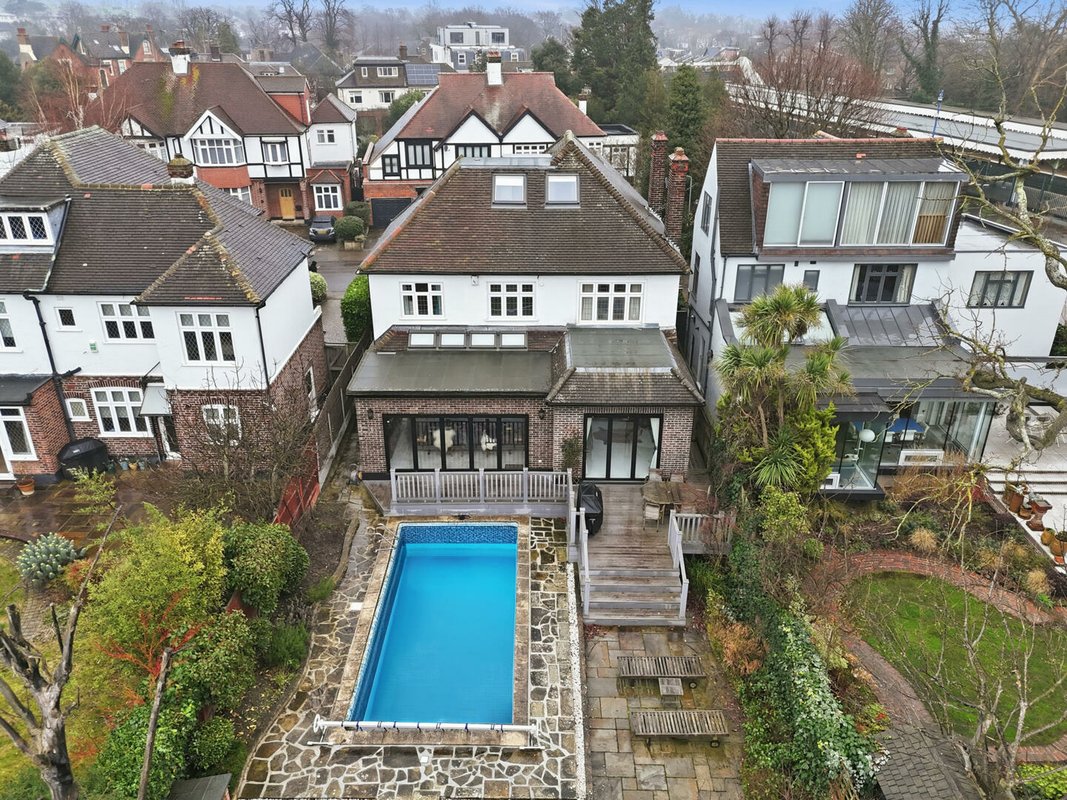 Set in a quiet cul-de-sac in sought-after Wanstead, this refined detached residence features four double bedrooms, two elegant dressing rooms, three bathrooms, and a private swimming pool.