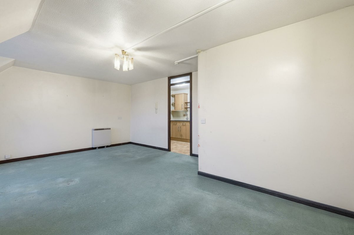Accessed via lift, the apartment offers two double bedrooms, both featuring fitted wardrobes, with the principal bedroom enjoying particularly extensive storage. The bright and spacious lounge is enhanced by two windows and offers ample room for both comfortable seating and a dedicated dining area.