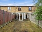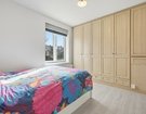 Upstairs, there are two well-proportioned double bedrooms. The principal bedroom features an entire wall of full-height fitted wardrobes, while the second bedroom benefits from a generous built-in storage cupboard over the stairs. Both are served by a family bathroom with shower over bath.