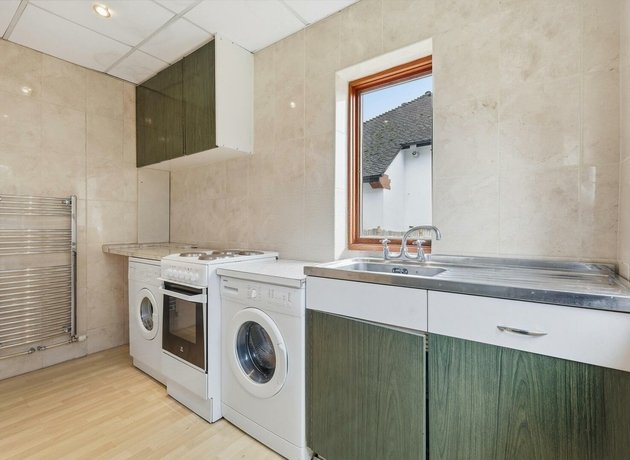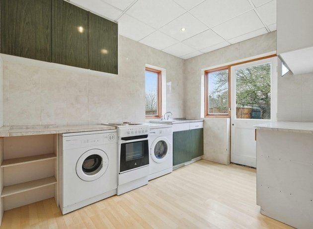 The rear garden extends to approximately 66ft, arranged to patio and lawn, and concludes with a substantial outbuilding currently utilised for storage, offering scope for enhancement, subject to requirements.